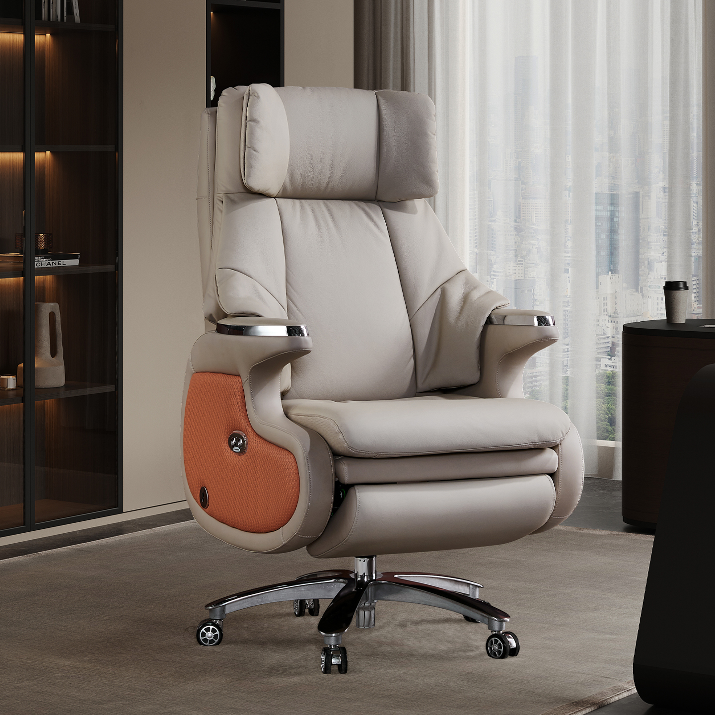 电动按摩老板椅可躺真皮高档商务办公椅轻奢舒适牛皮大班椅总裁椅