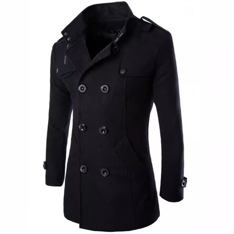 2025秋冬款男装中长款双排扣风衣男式英伦加厚毛呢外套修身呢大衣