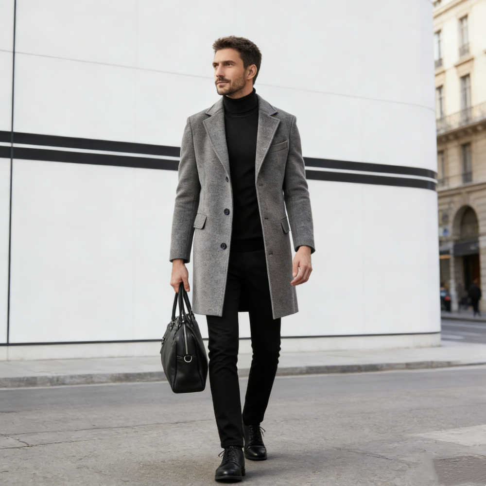 2025春秋款立领欧美风衣男装呢子大衣中长款修身男士英伦大衣男式