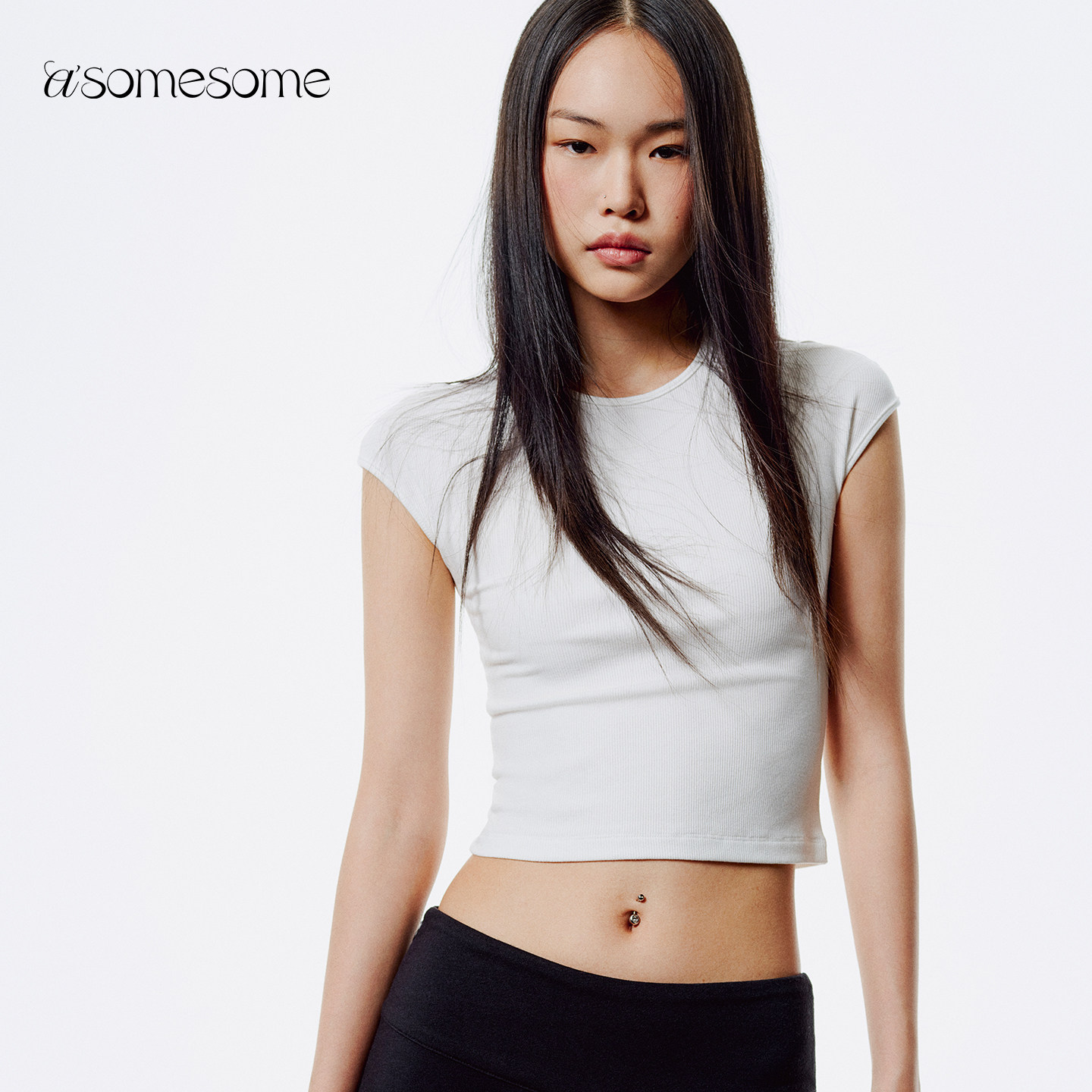 asomesome连肩白色修身短袖t恤女短款圆领弹力紧身内搭无袖上衣