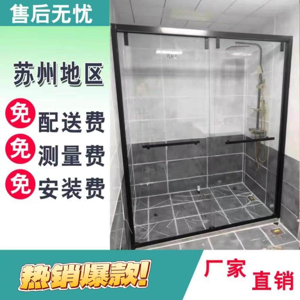 304不锈钢一字型极窄淋浴房化妆室隔板黑色钻石弧形防爆玻璃拉门
