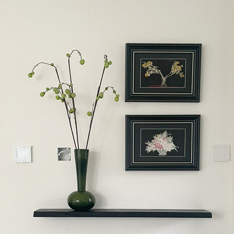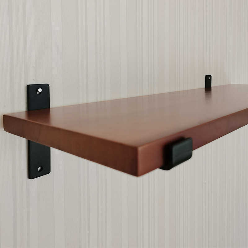 侘寂风原木墙壁一l字隔板走廊玄关无痕置物架炭化黑壁挂式背景层