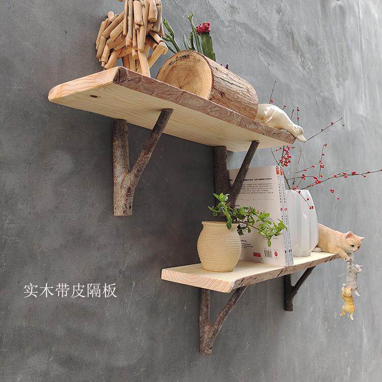 墙上置物架复古985实木字隔板一板壁挂原木不规则厅层层客书架背