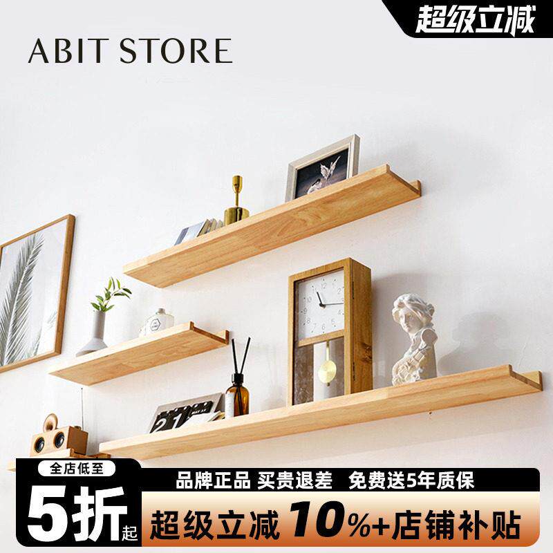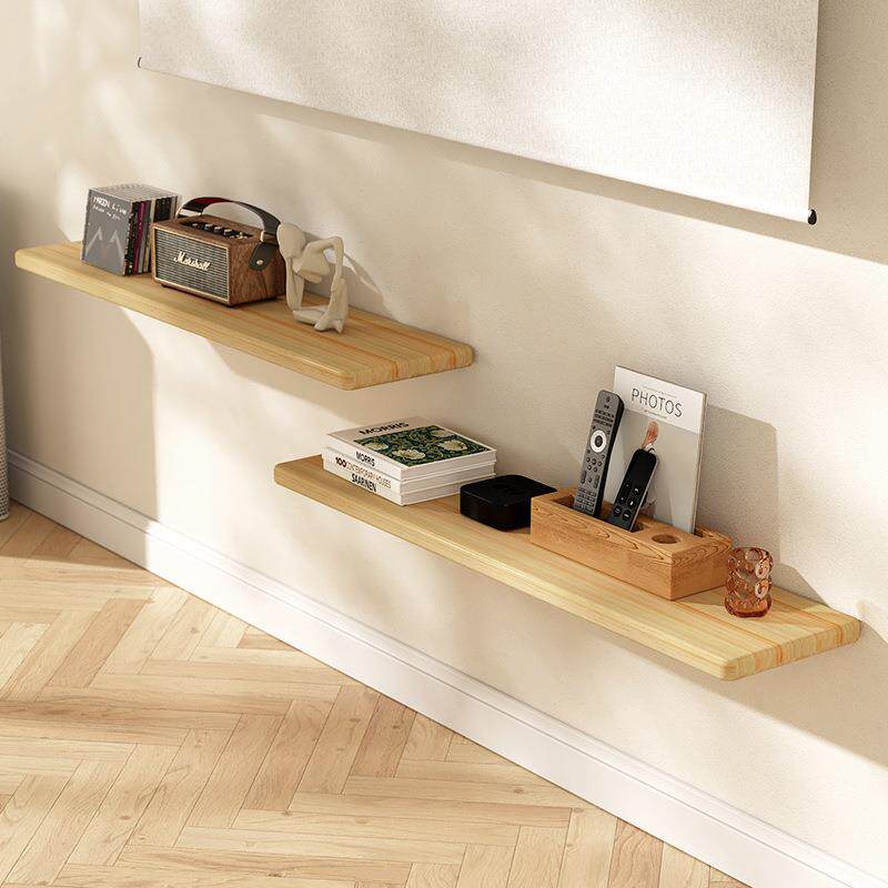 免打孔实木隔板一字型客厅置物架电视背景墙壁挂卧室墙壁板子简易