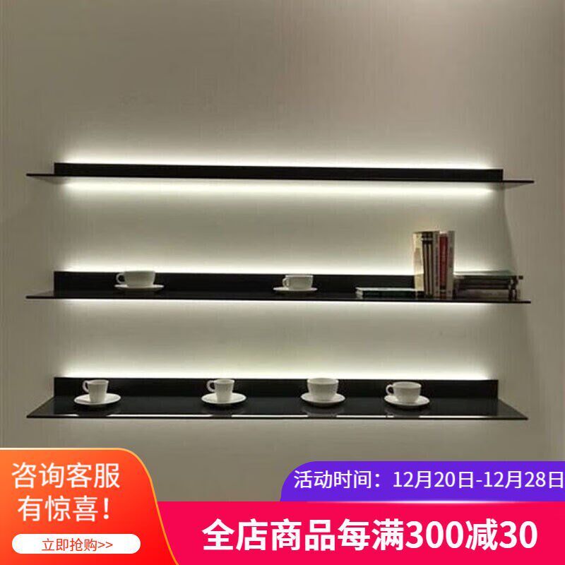 墙光上一16711字隔板置物层架极简装饰架壁挂墙展示架带灯板书发