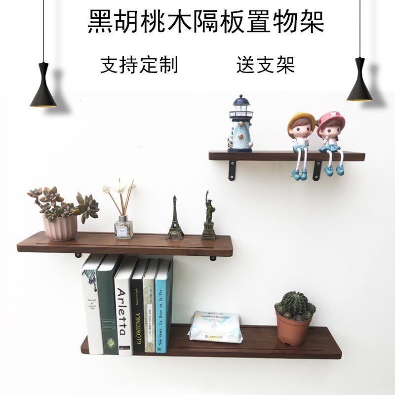 黑胡桃木一c字隔板墙上置物架实木装饰搁板架墙上书架壁挂层板定