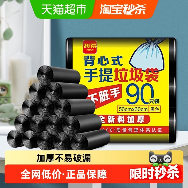 【限时包邮】利得大垃圾袋手提背心加厚厨房50*60双面1.7丝