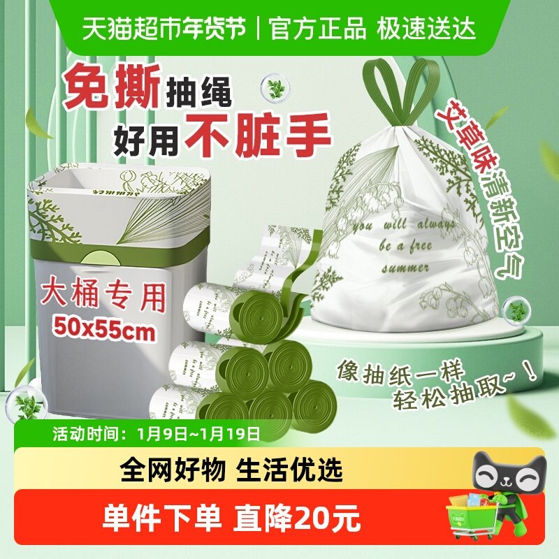 【限时包邮】利得免撕印花抽绳垃圾袋50*55艾草加厚厨房大号100只
