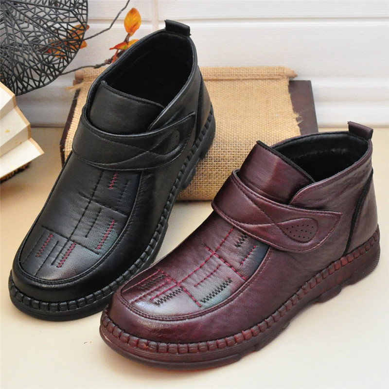 冬季老人棉鞋保暖妈妈真皮加绒皮鞋羊毛短靴女中老年大码平底防滑