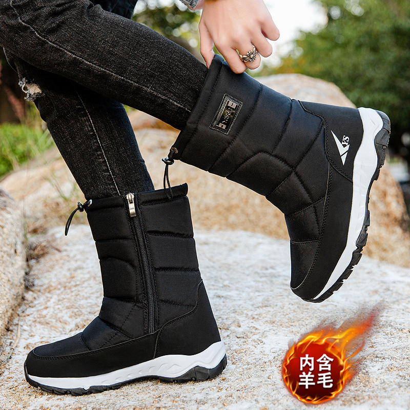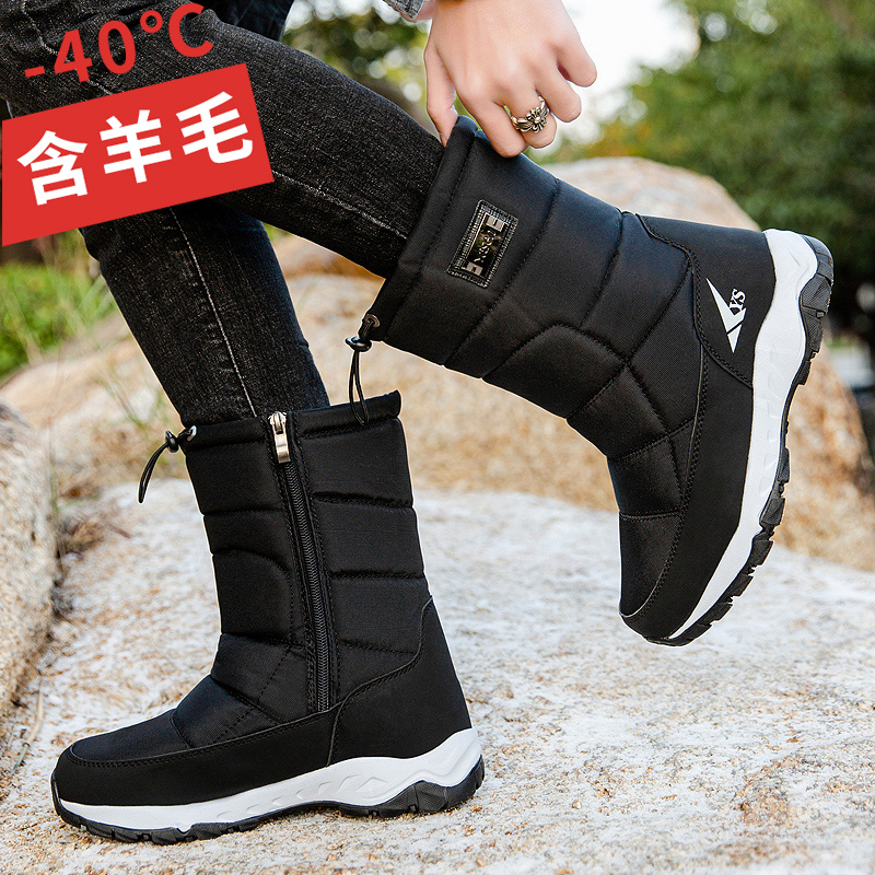 东北零下40度雪地靴男士冬季老人棉鞋保暖加绒加厚防滑中高筒靴子