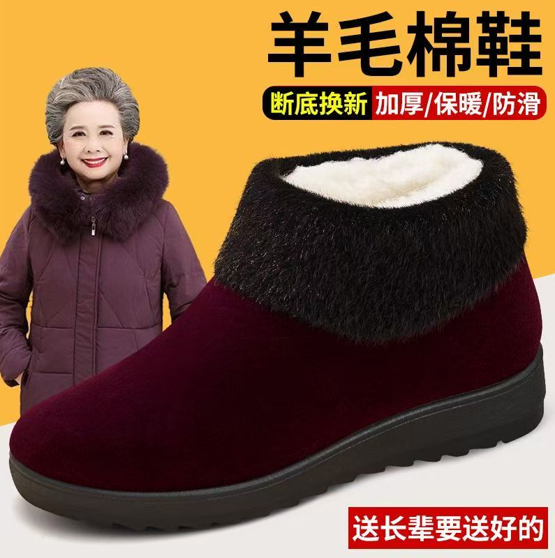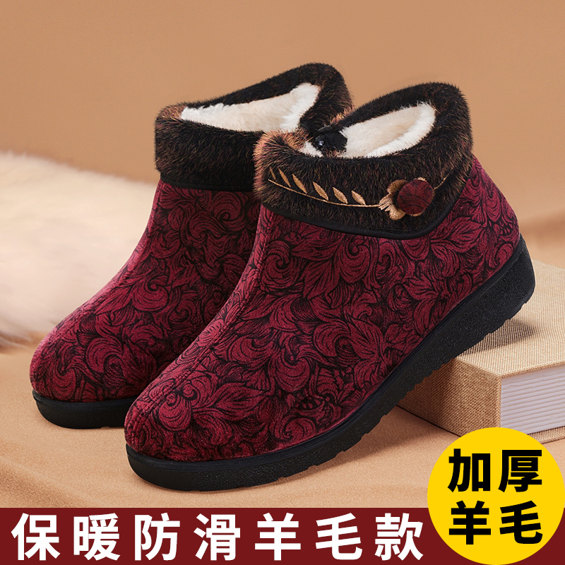 冬季老北京布鞋女羊毛老人棉鞋保暖加绒加厚中老年防滑妈妈雪地靴