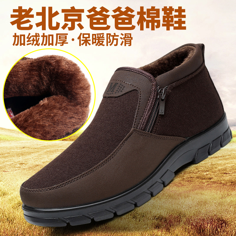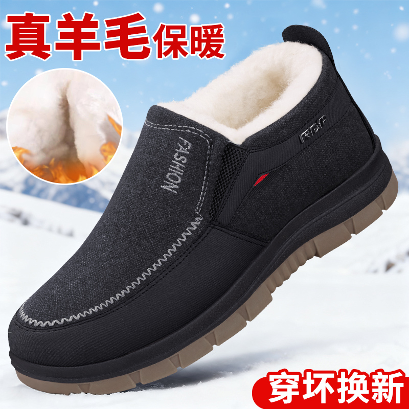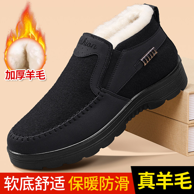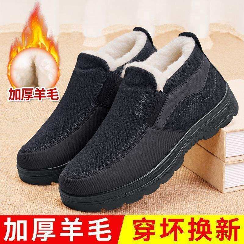 冬季老北京布鞋男老人棉鞋保暖加厚羊毛加绒中老年爷爷防滑爸爸鞋