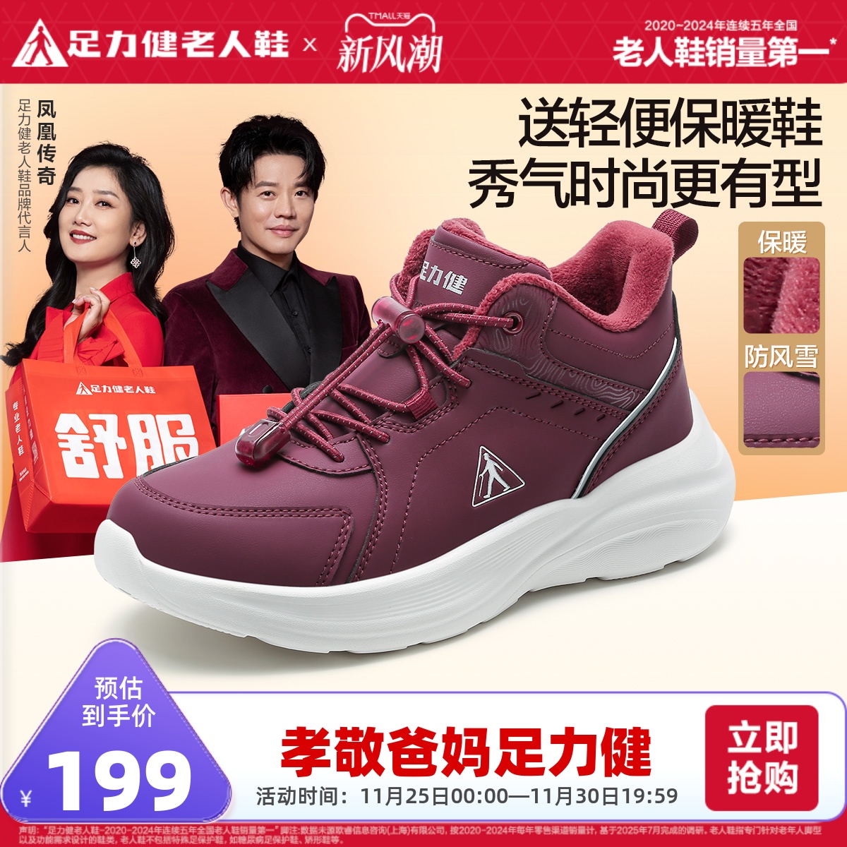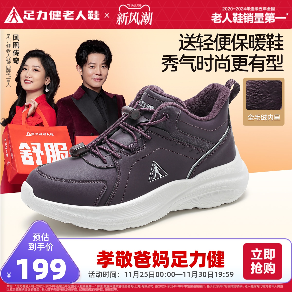 足力健旗舰店2025年冬季加厚老人鞋休闲保暖棉鞋加绒轻便妈妈鞋