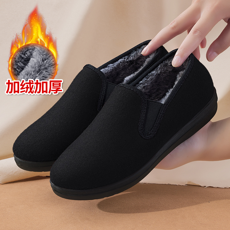 冬季加绒奶奶鞋老北京布鞋女老人棉鞋保暖妈妈鞋软底防滑老太太鞋