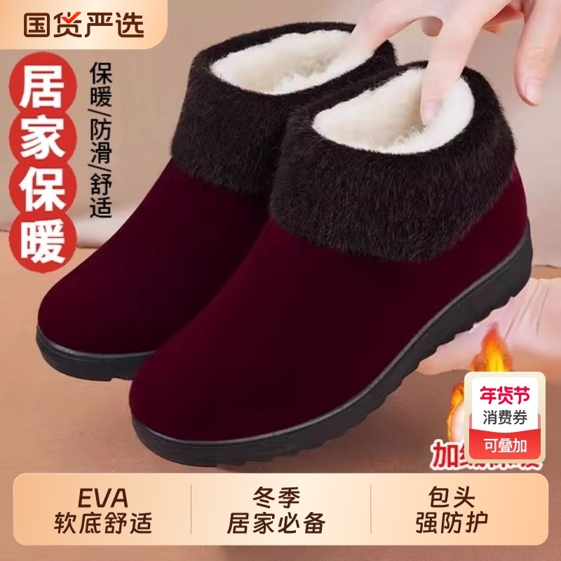 老北京布鞋女冬加绒加厚妈妈鞋中老年老人棉鞋保暖防水防滑雪地靴