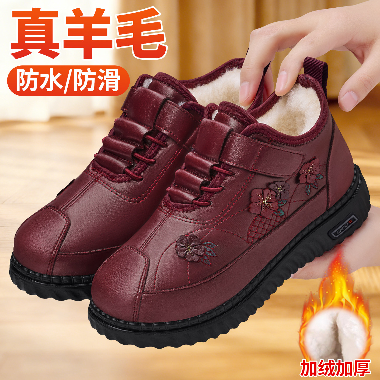 2026新款冬季妈妈老人棉鞋保暖真皮加绒皮鞋羊毛短靴女中老年平底