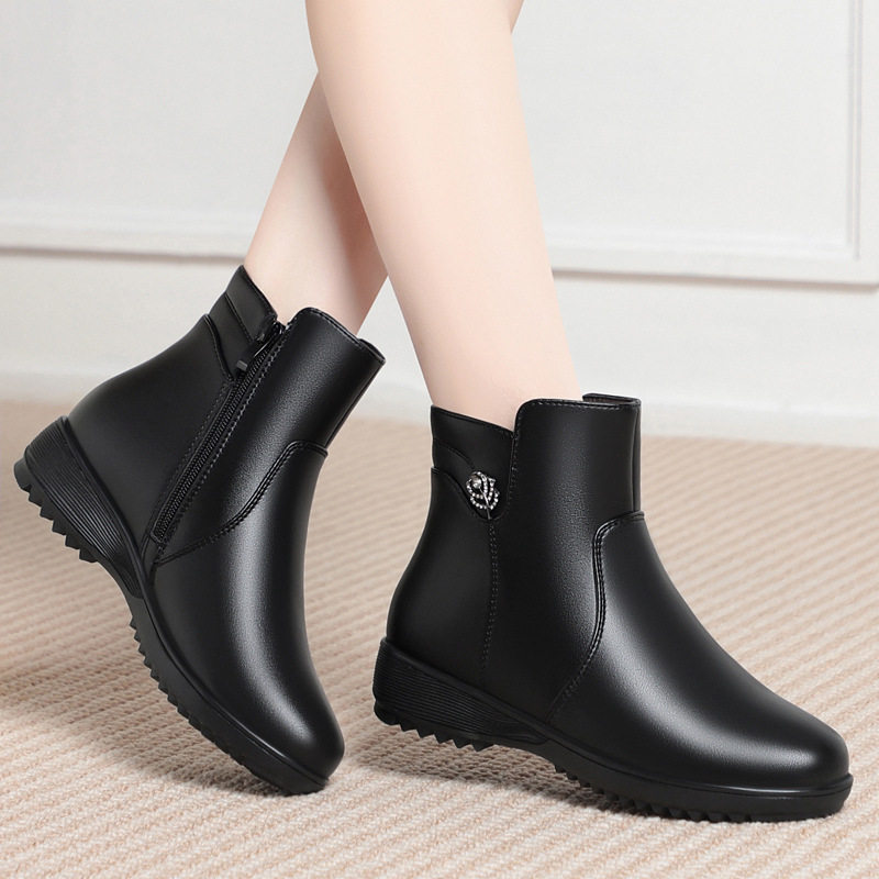 冬季妈妈老人棉鞋保暖真皮加绒皮鞋短靴女中老年大码平底防滑保暖