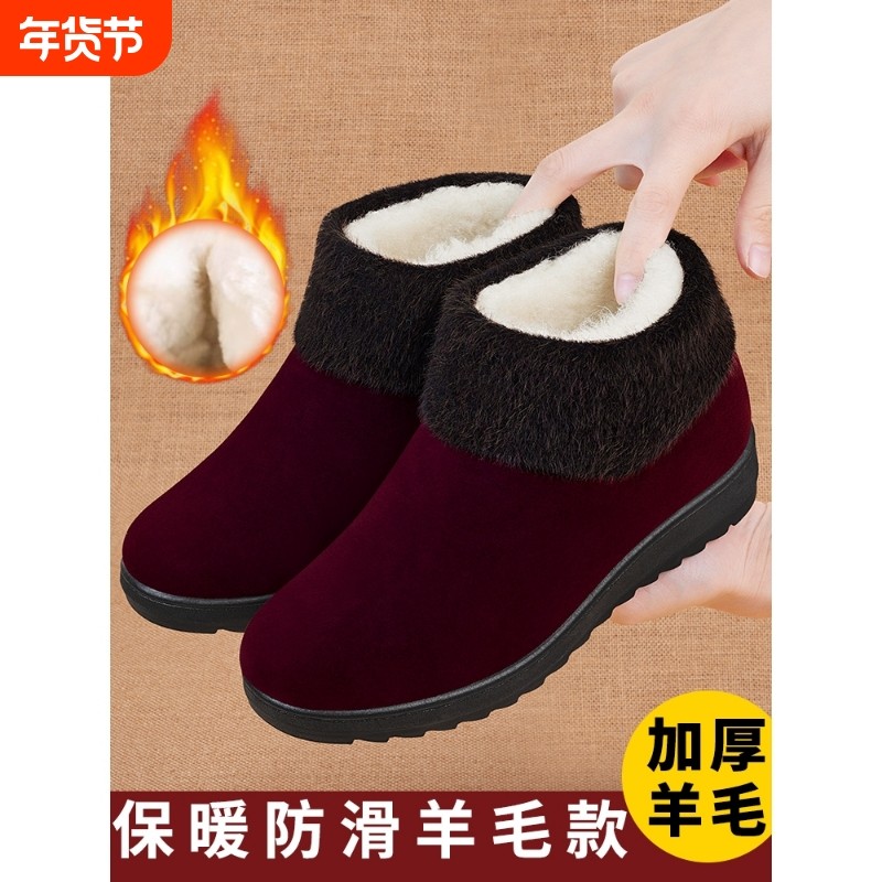 妈妈羊毛女靴子女款雪地短靴中老年加绒老人棉鞋保暖防滑奶奶棉靴