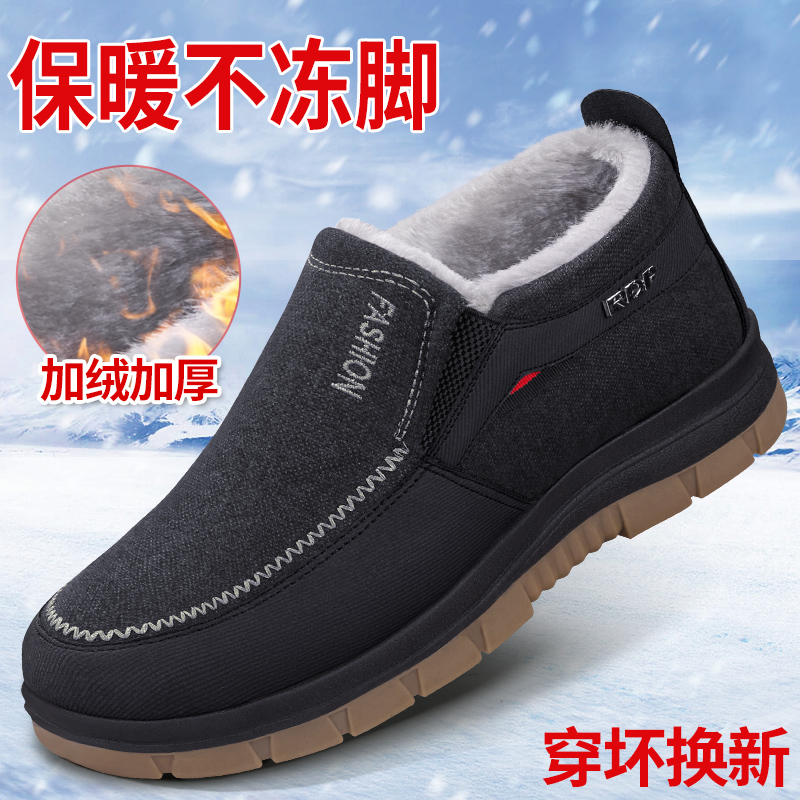 冬天老北京布鞋男款老人棉鞋保暖加绒中老年爸爸鞋加厚防滑爷爷鞋