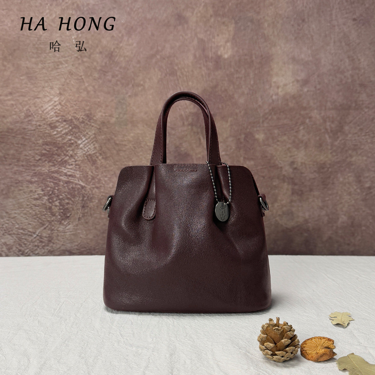 哈弘植鞣头层牛皮真皮单肩斜挎手提包软皮复古百搭简约日常通勤包
