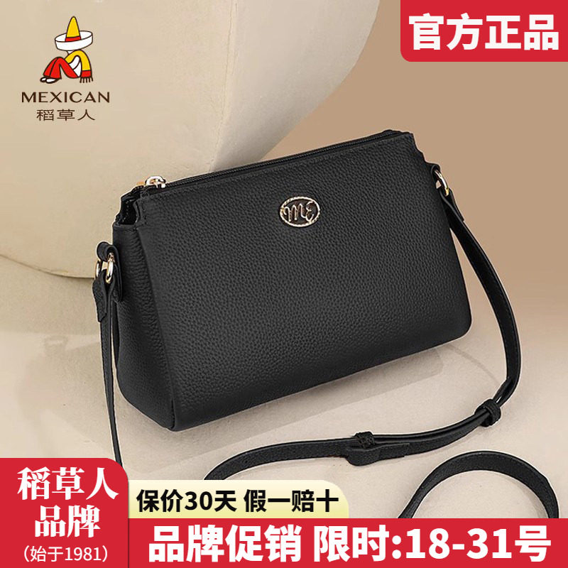 稻草人真皮女包2025新款简约单肩包女士小方包时尚百搭斜挎包正品