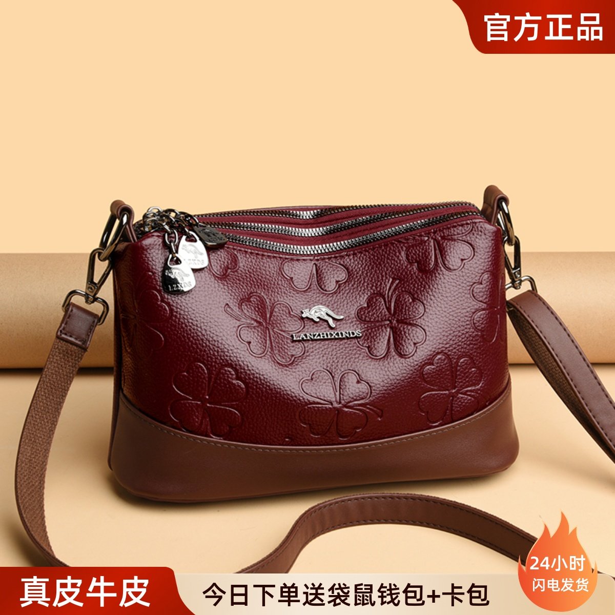 - 真皮斜跨女包