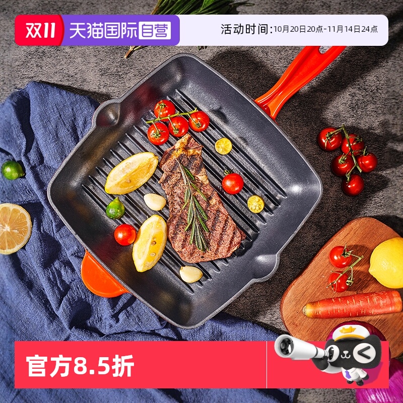 【自营】德国牛排煎锅家用铸铁珐琅锅条纹不粘锅无涂层平底锅通用