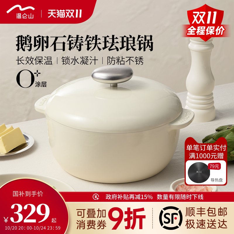 Velosan温仑山鹅卵石铸铁珐琅锅家用微压汤锅蒸煮炖锅焖锅炖锅