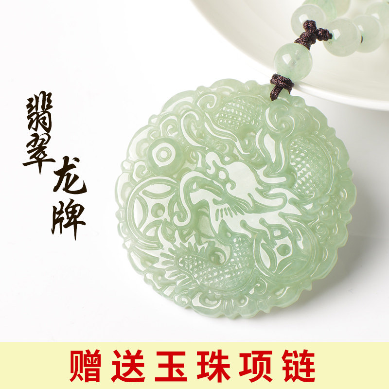 缅甸A货天然翡翠龙牌吊坠男女款生肖龙挂件玉坠项链珠宝玉石证书