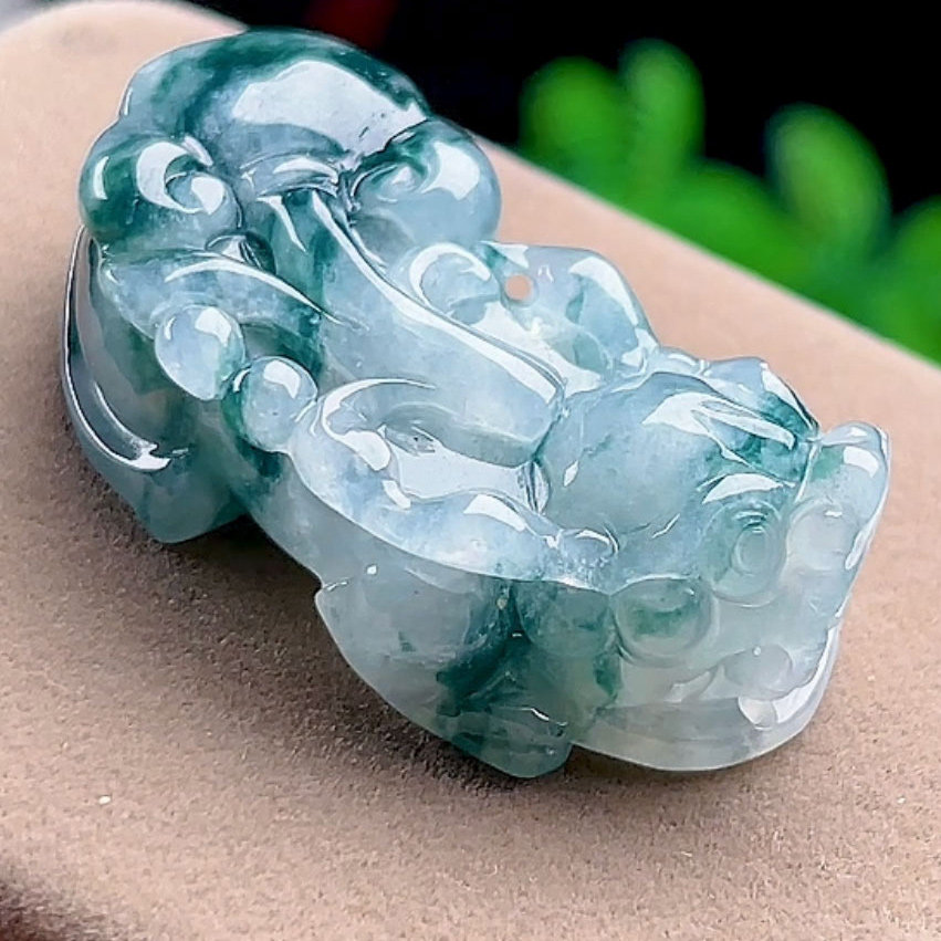 天然缅甸A货翡翠浅绿霸王貔貅男女款冰糯种玉石吊坠通财皮丘挂件