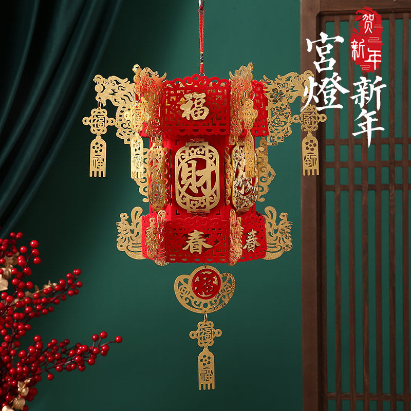 2026新中式万年红洒金木质镂空宣纸挂件中国风福字空白纸书法斗方手写洒金对创意灯笼新年春节过年装饰