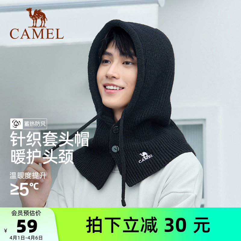 骆驼针织套头帽2025年新款男女冬季巴拉克拉法帽子围巾一体毛线帽