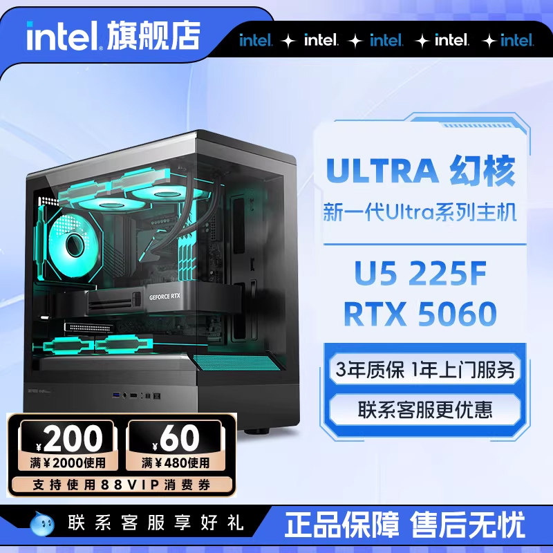 intel官方旗舰店 ULTRA 5 225F升U5 245KF主机/RTX5060显卡/5060Ti游戏台式电脑主机英特尔三角洲整机i5主机