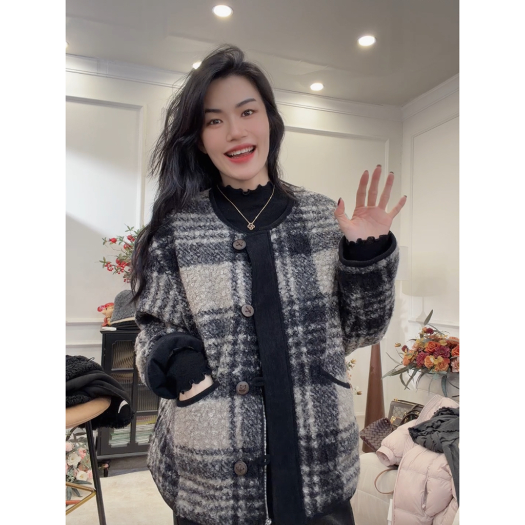 阔色气质翻领羽绒服中短款2025深秋冬季女新款毛绒外套国风大衣