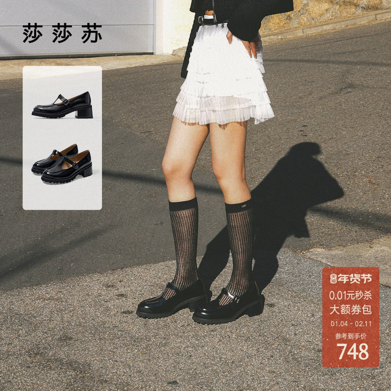 大东玛丽珍女鞋2026春季新款甜美粗跟圆头小皮鞋配裙子通勤女单鞋