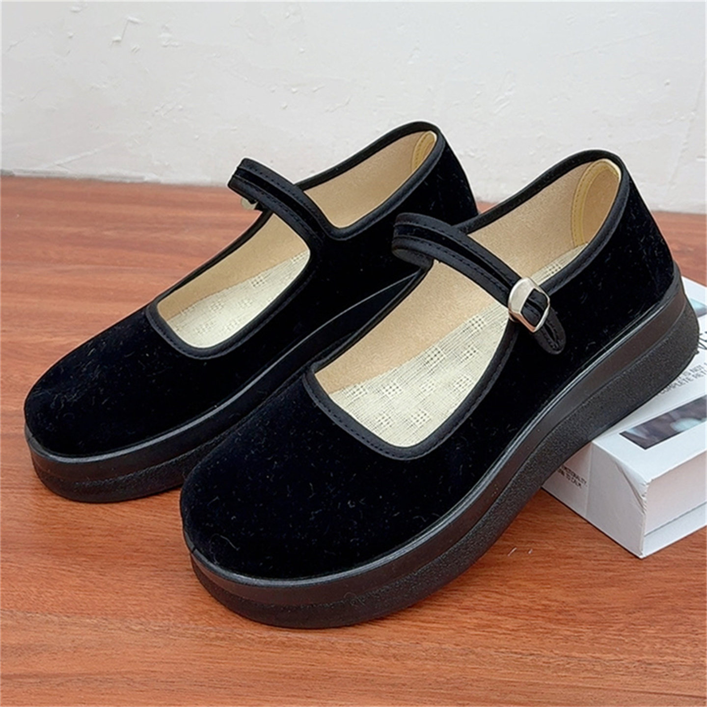 新款休闲老北京布鞋女厚底松糕舒适黑色工作鞋酒店上班通勤女单鞋