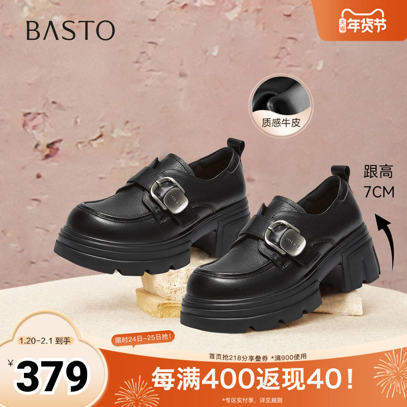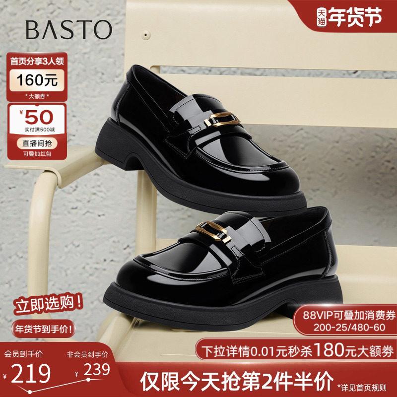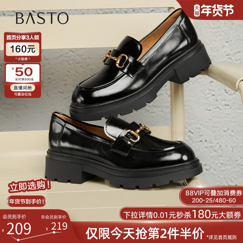百思图2026春新款英伦学院风厚底乐福鞋小皮鞋通勤女单鞋A0603AA6