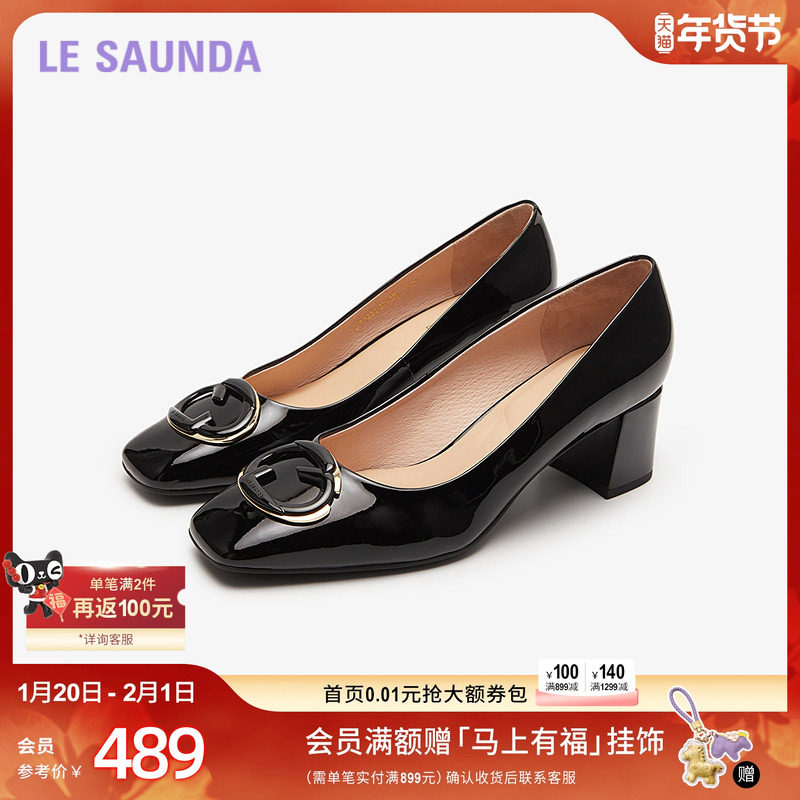沙驰女鞋时尚方头不累脚通勤女单鞋2025秋冬新款中粗跟深口小皮鞋