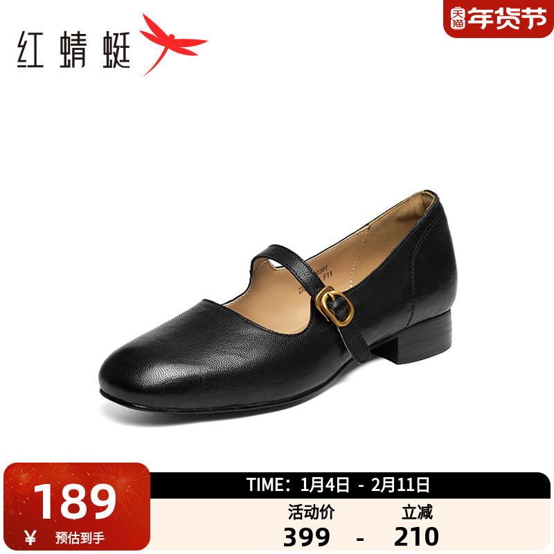 红蜻蜓玛丽珍鞋女2025新款时尚气质通勤女单鞋圆头复古小皮鞋