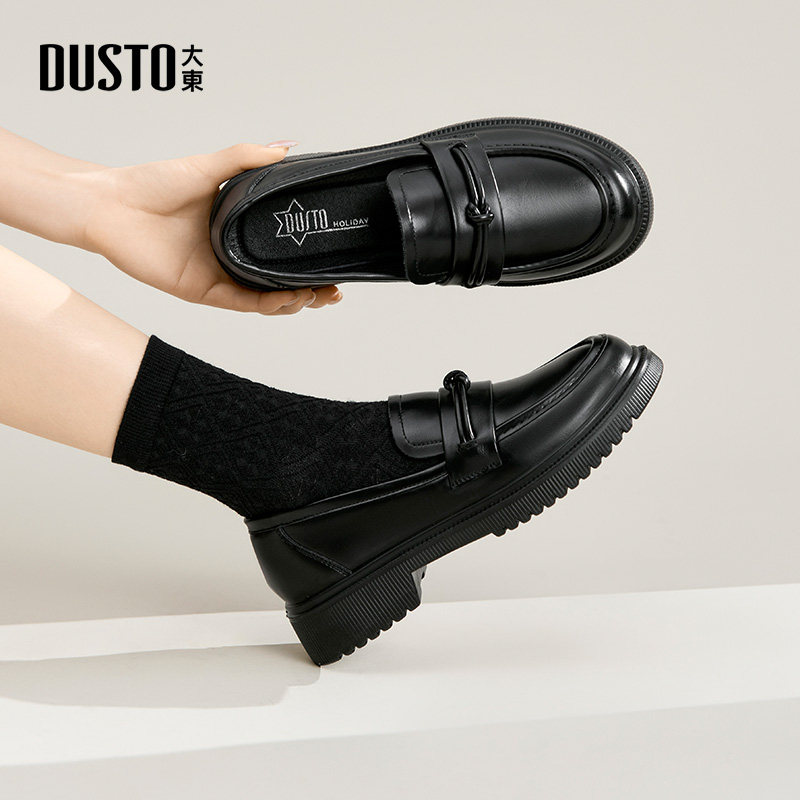 大东女鞋乐福鞋2026春新款厚底圆头通勤女单鞋两穿学生小皮鞋百搭