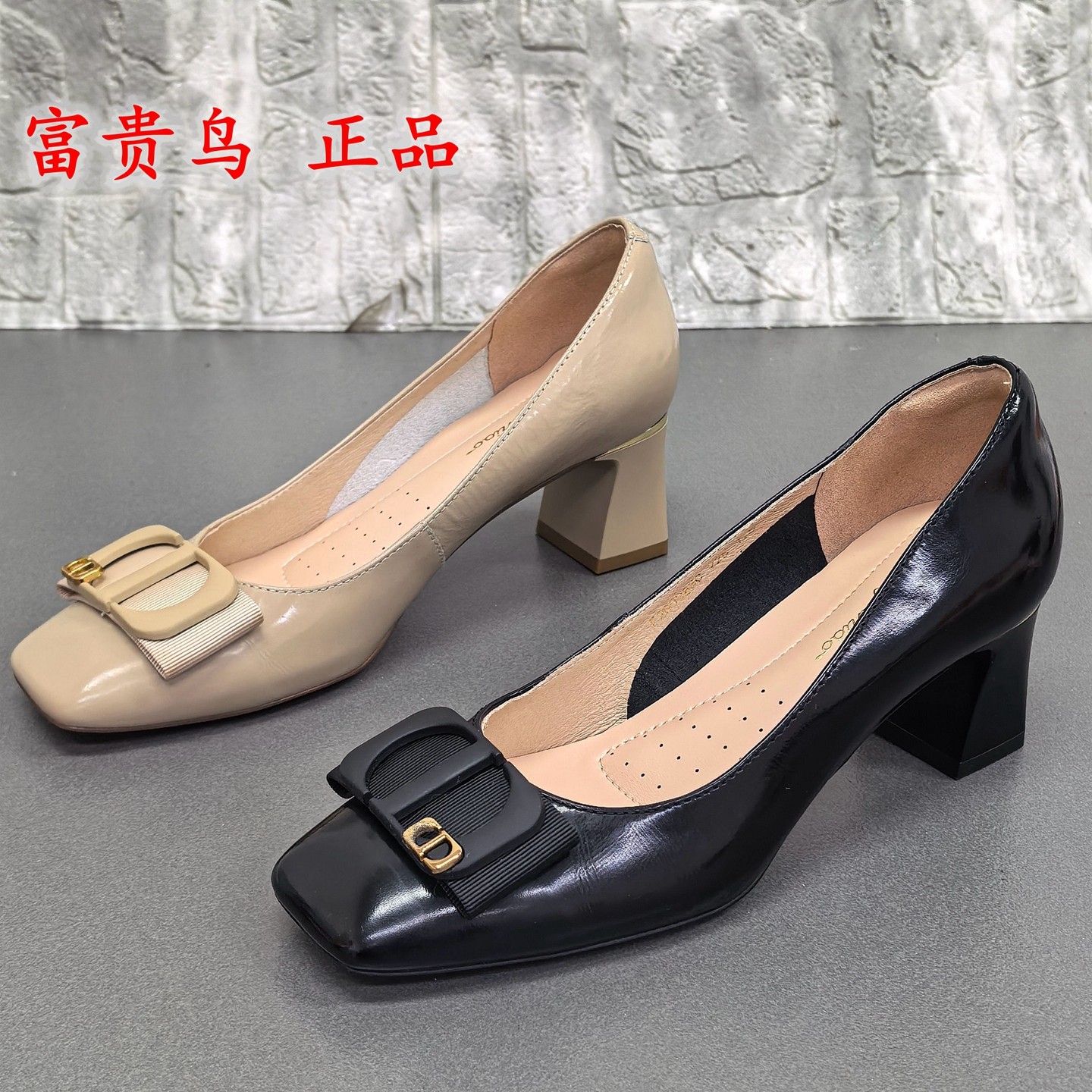 商场正品撤柜断码处理春秋方头粗跟浅口头层牛皮百搭通勤女单鞋潮