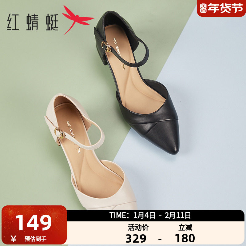 红蜻蜓女鞋时尚通勤女单鞋气质粗跟百搭一字带包头凉鞋BX5125902