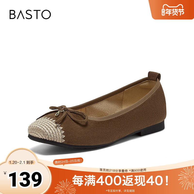 百思图2025秋季新款袋鼠鞋时尚简约休闲通勤女单鞋UWK02CM5