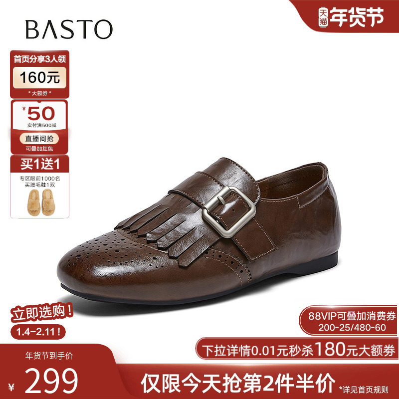 百思图2026春季新款英伦雕花布洛克流苏乐福鞋通勤女单鞋D3976AM6