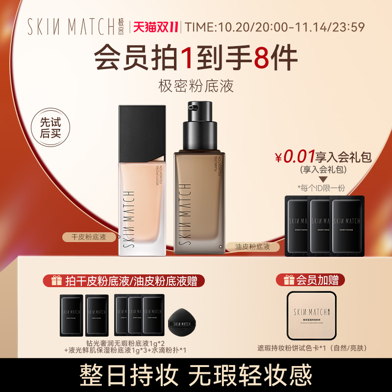 双11立即抢购】极密持妆粉底液混干油皮水润保湿遮瑕持久轻薄正品