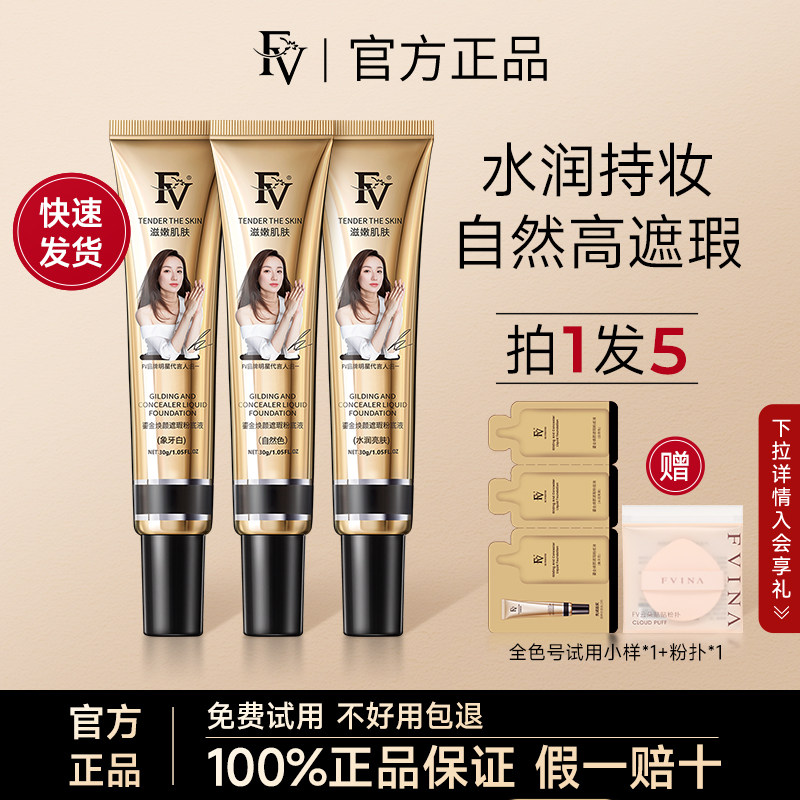 FV正品黄奕鎏金焕颜粉底液持久不脱妆控油保湿遮瑕BB霜官方旗舰店