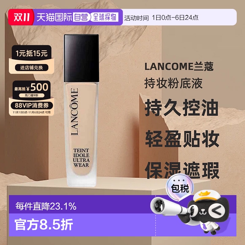 香港直邮lancome兰蔻持妆粉底液混油皮持久控油保湿遮瑕30ml正品