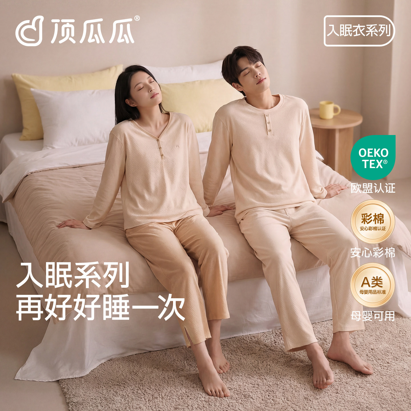 顶瓜瓜彩棉情侣睡衣套装女款超舒服纯棉长袖套头春秋季男士家居服
