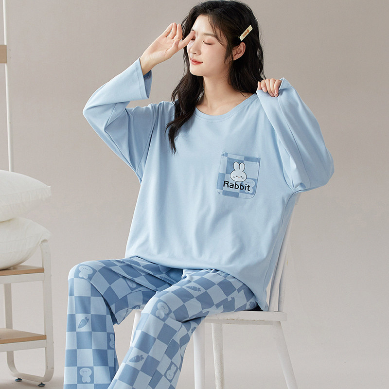 悦内睡衣女春秋季秋款长袖纯棉家居服圆领套头大码休闲可外穿出门