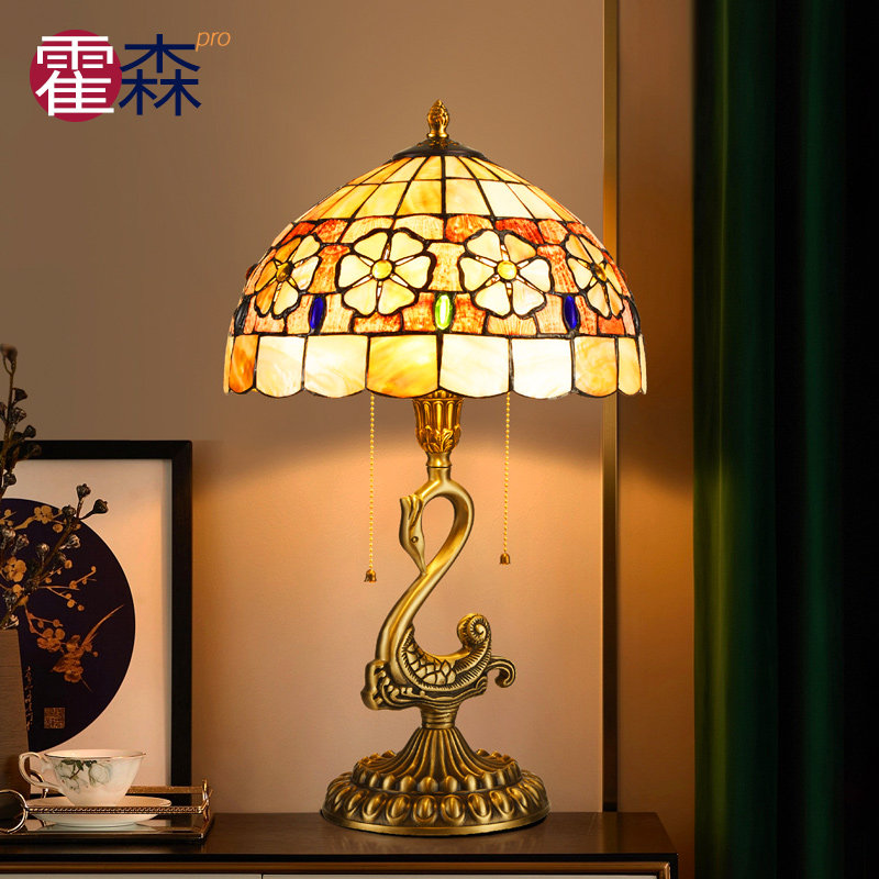 美式奢华纯铜台灯卧室床头灯蒂凡尼天鹅全铜灯欧式新中式客厅书房